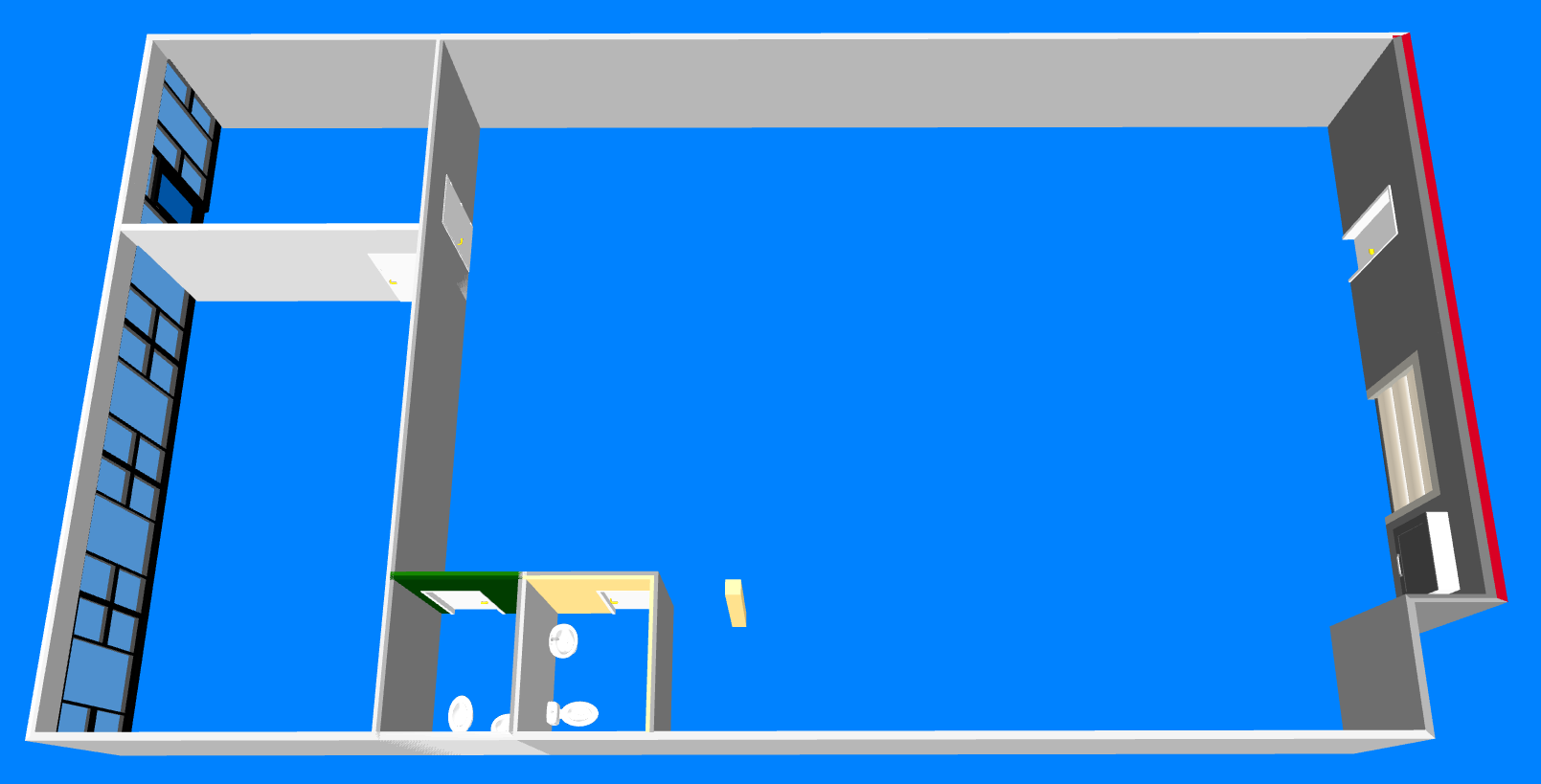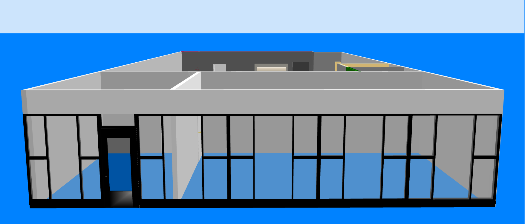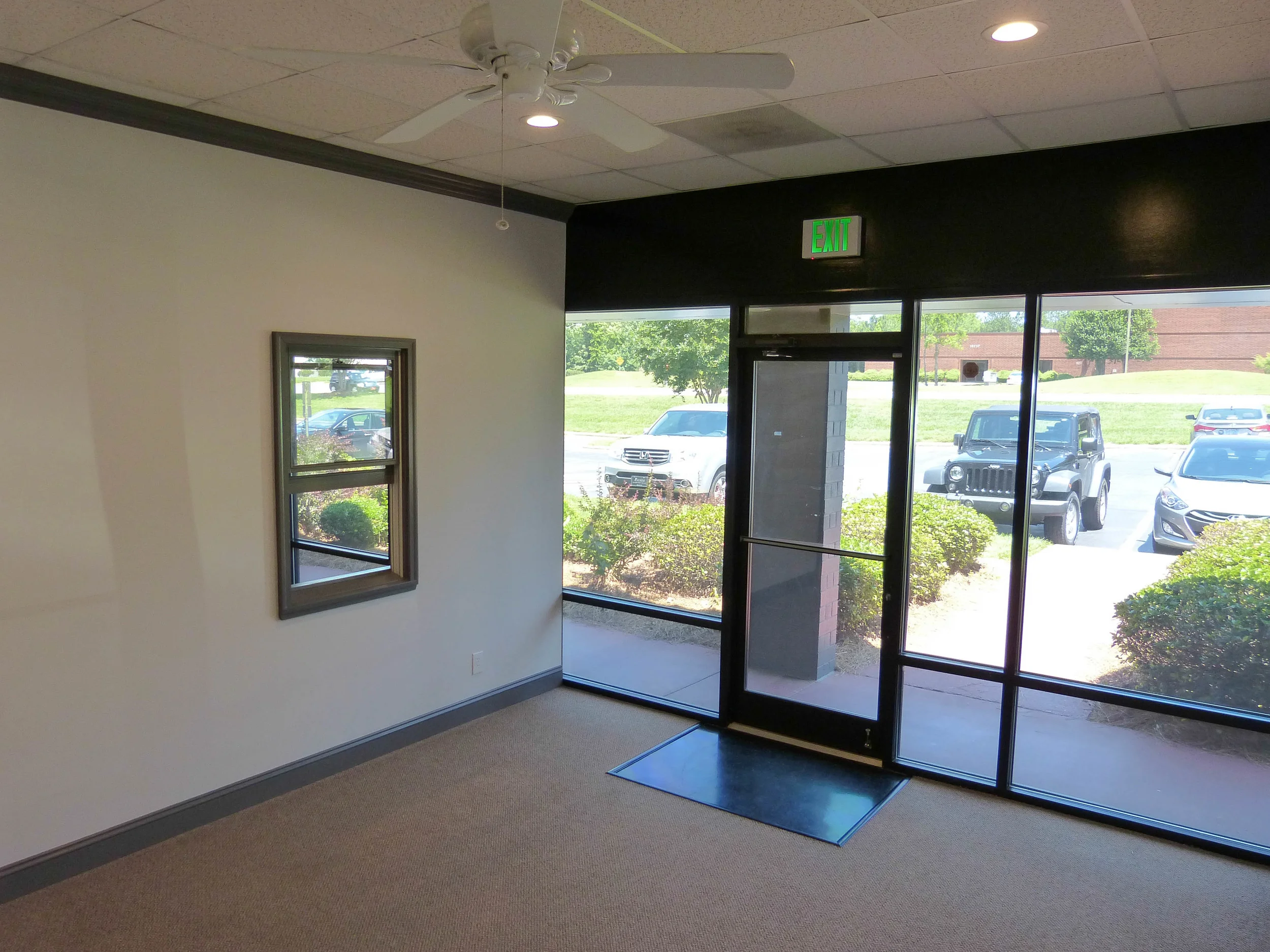 Unit B has a 1,868 square foot studio with 5 ceiling fans, nine and a half foot ceilings, climate control, an 8' garage door loading dock, 2 bathrooms, a lobby and a large office with windows.