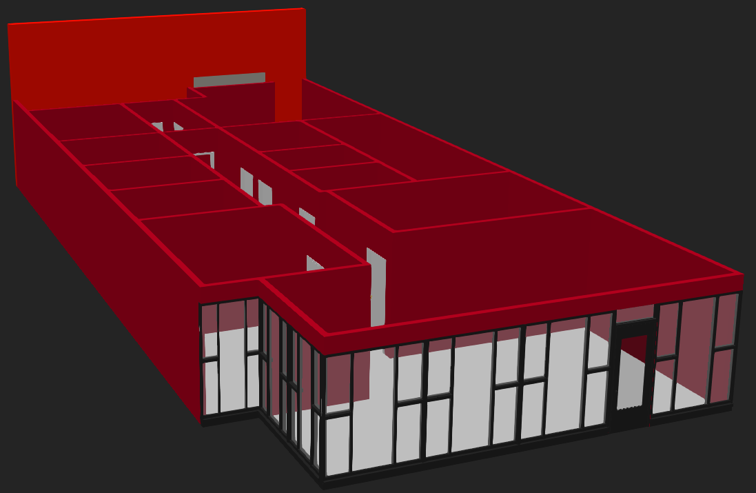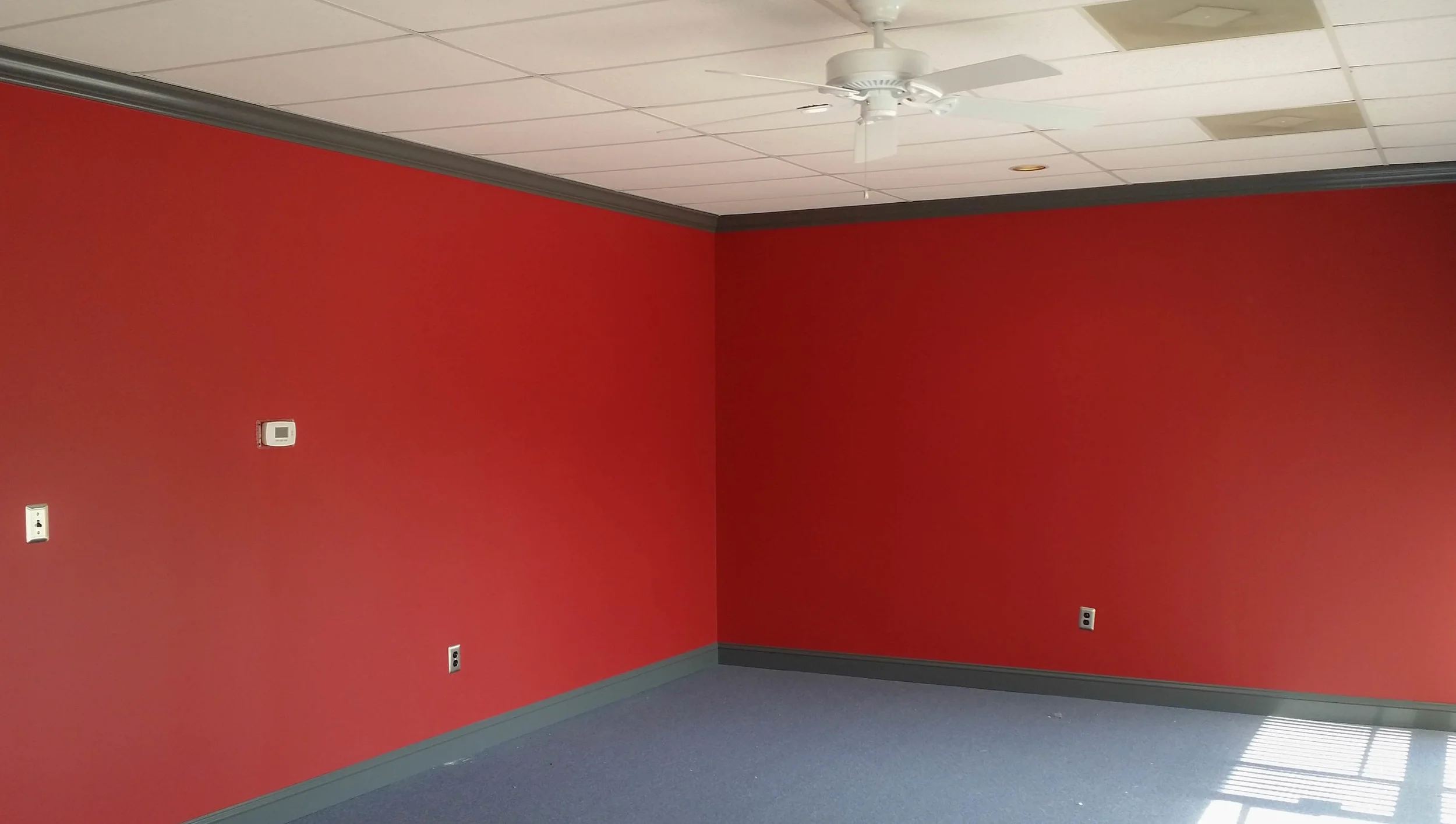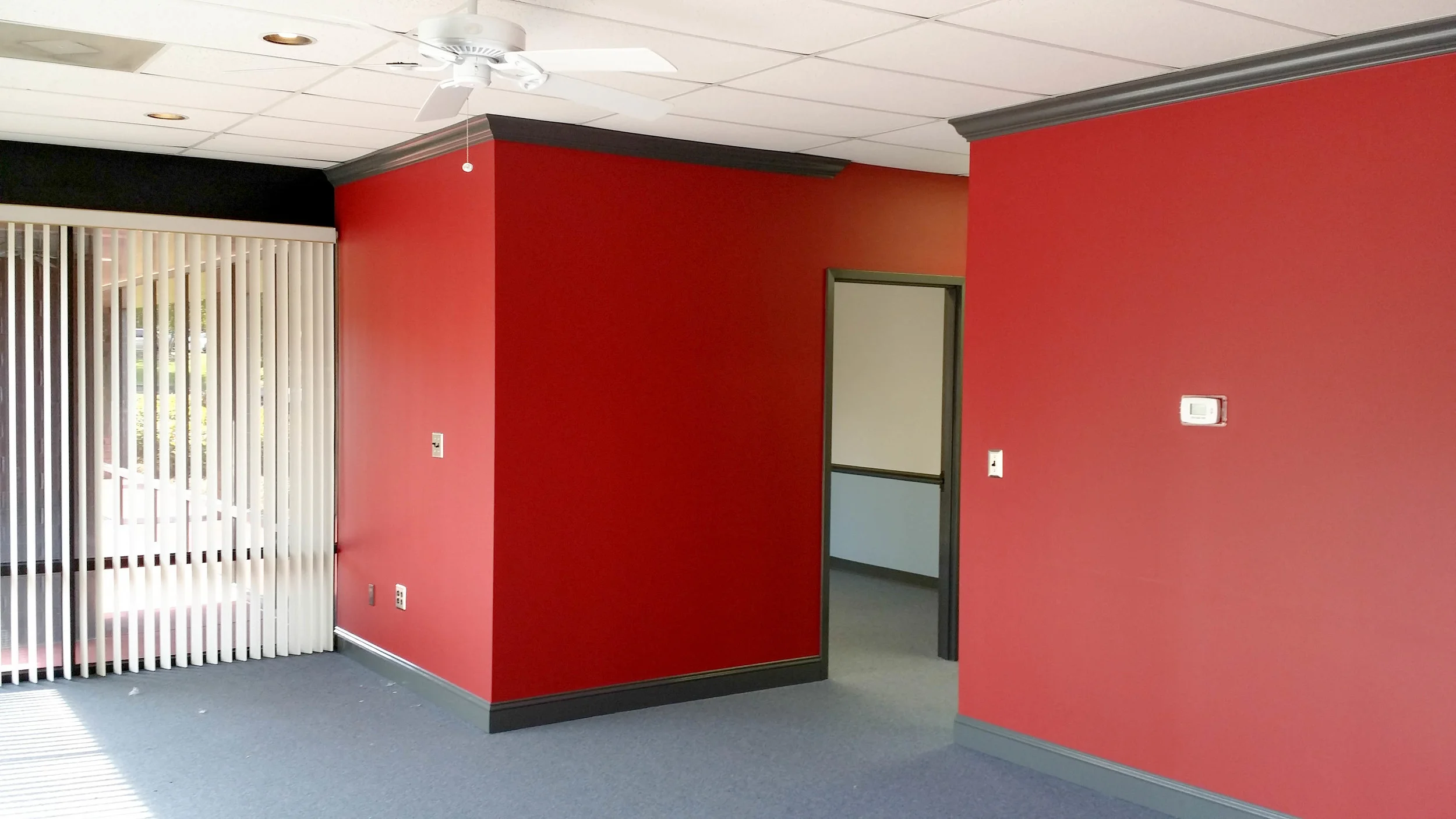 Option 2 transforms the back of Unit E into 283 square feet of storage space leaving the unit with 6 offices.